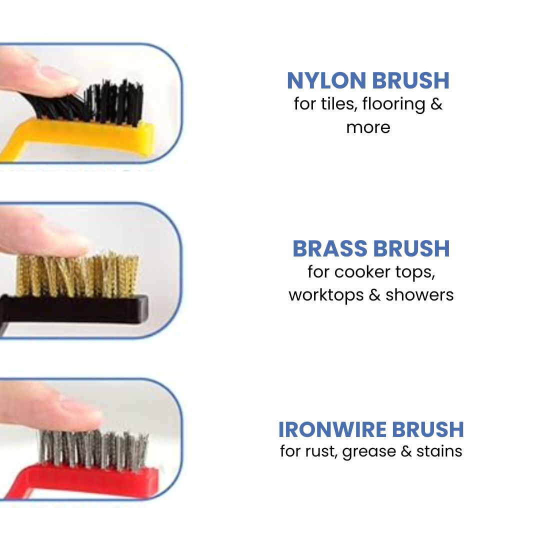 The GroutPro Kit is an all-in-one cleaning solution engineered to tackle stubborn grime, grease, rust, and built-up residue across grout lines and hard surfaces. Designed for precision and durability, this kit combines three specialist brushes with a heavy-duty scraper, giving you the right tool for every level of cleaning intensity.